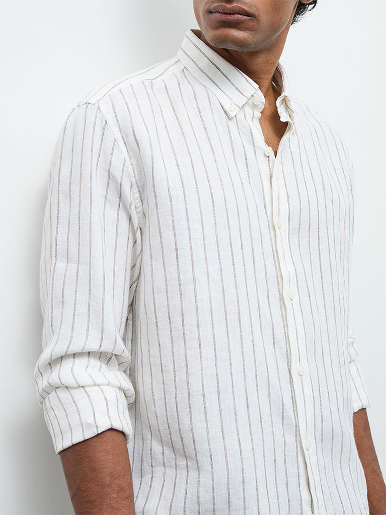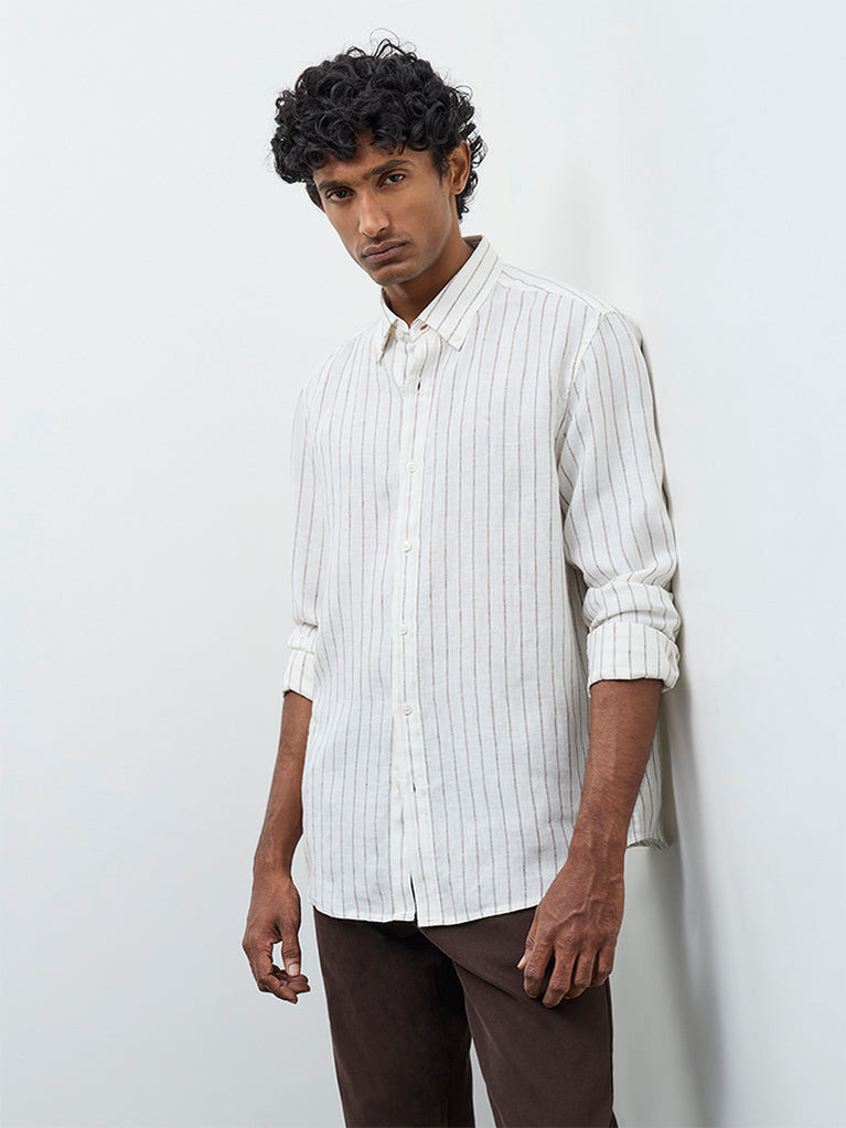 Ascot Off-White Striped Relaxed-Fit Linen Shirt