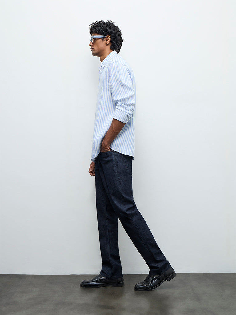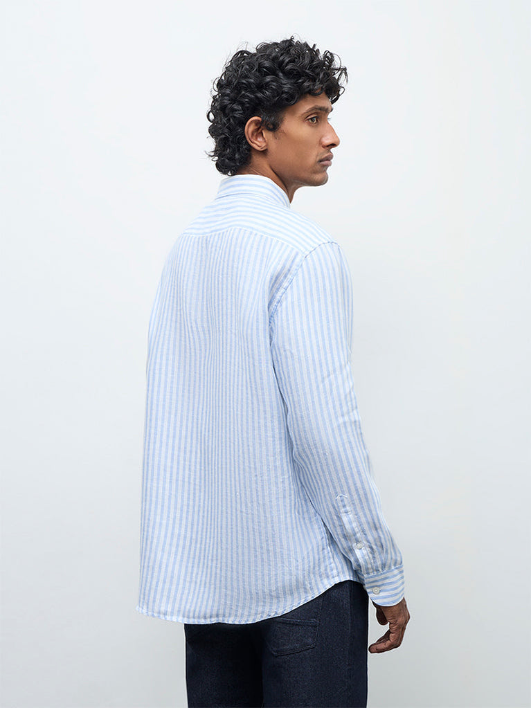 Ascot Light Blue Striped Relaxed-Fit Linen Shirt