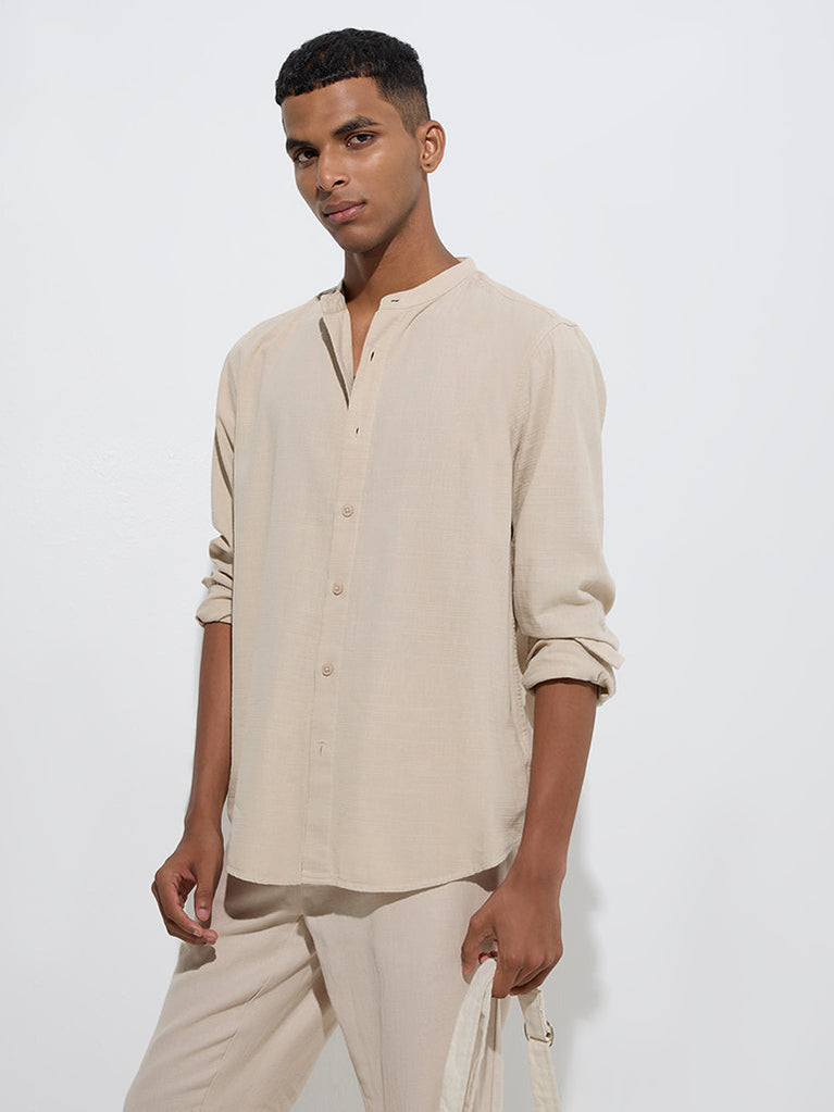 ETA Beige Solid Relaxed-Fit Cotton-Blend Shirt