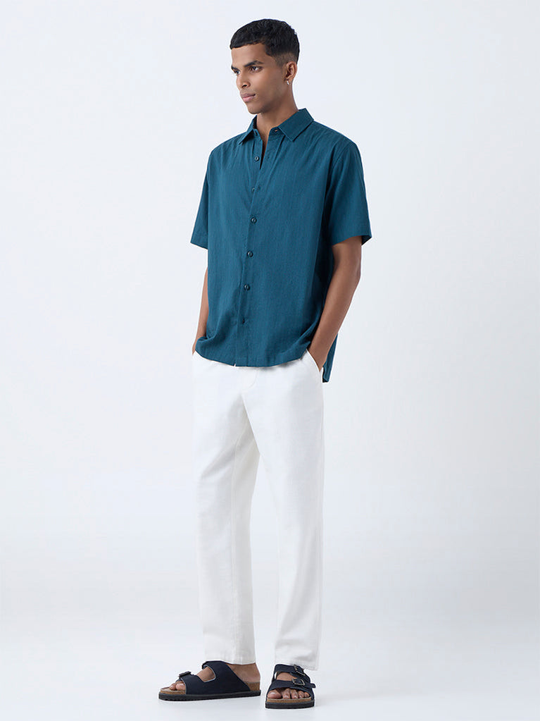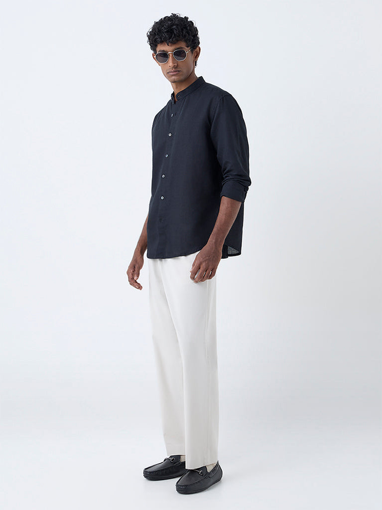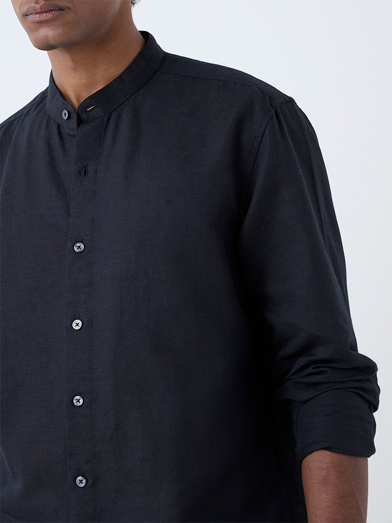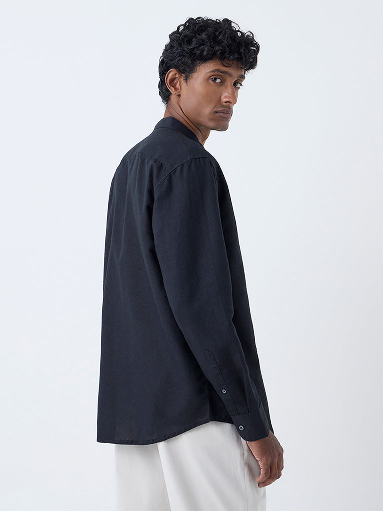 Ascot Black Solid Relaxed-Fit Linen-Blend Shirt
