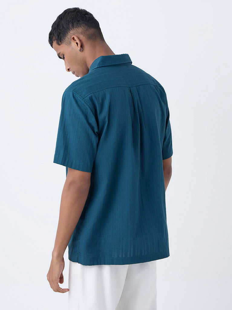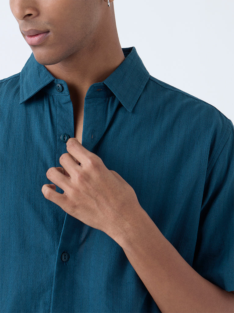 ETA Navy Self-Striped Relaxed-Fit Cotton Shirt