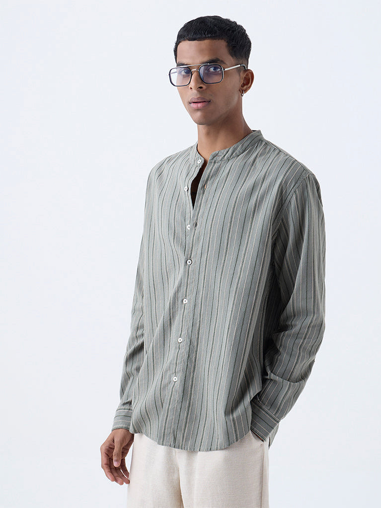 ETA Olive Striped Relaxed-Fit Cotton Shirt