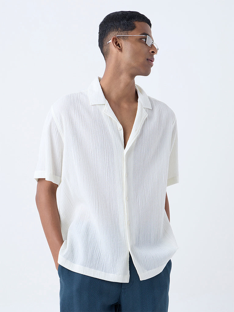 ETA Off-White Crinkle-Texture Relaxed-Fit Cotton Shirt