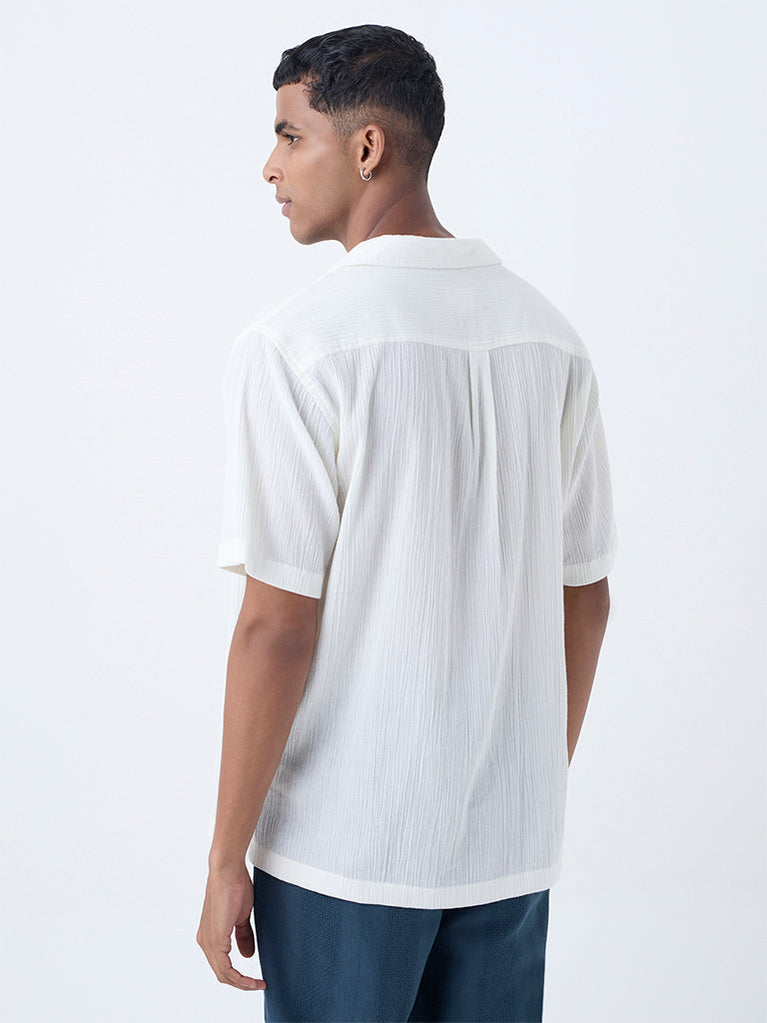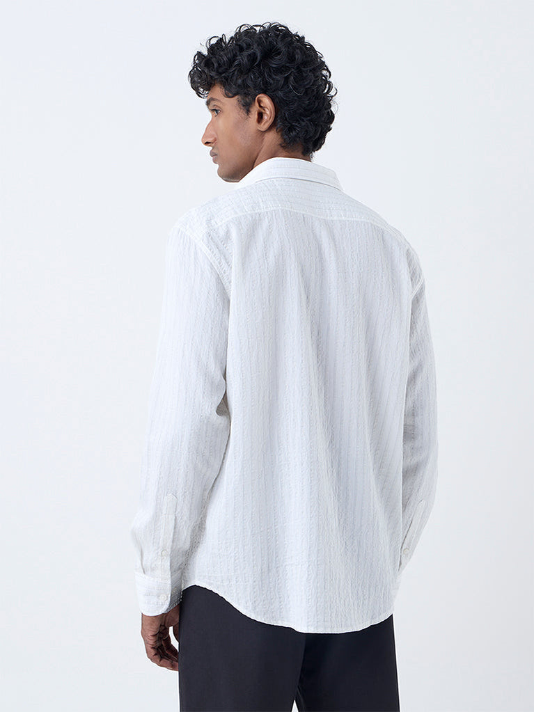 ETA White Self-Striped Relaxed-Fit Cotton Shirt