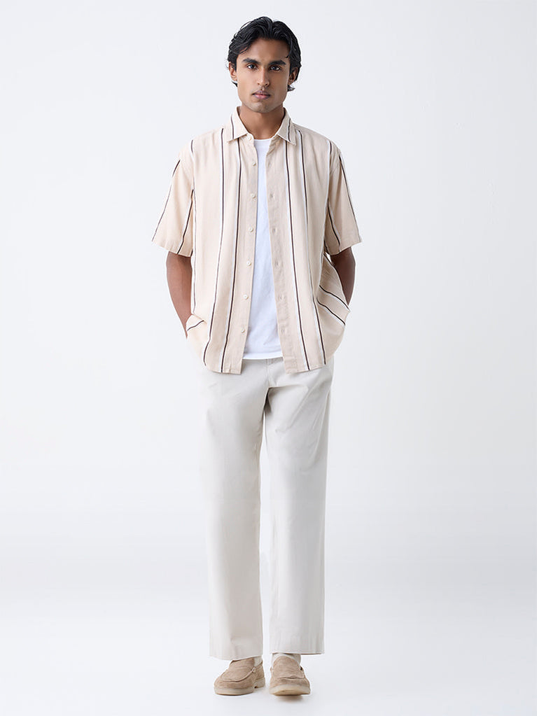 ETA Taupe Striped Relaxed-Fit Cotton Shirt