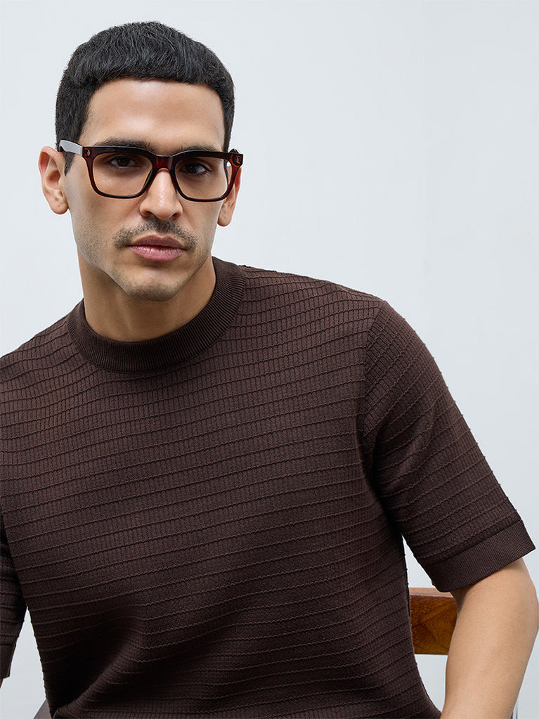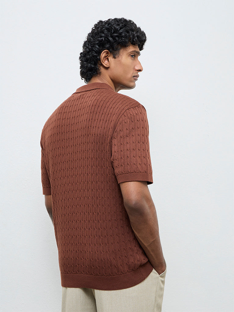 Ascot Dark Brown Textured Relaxed-Fit Cotton T-Shirt