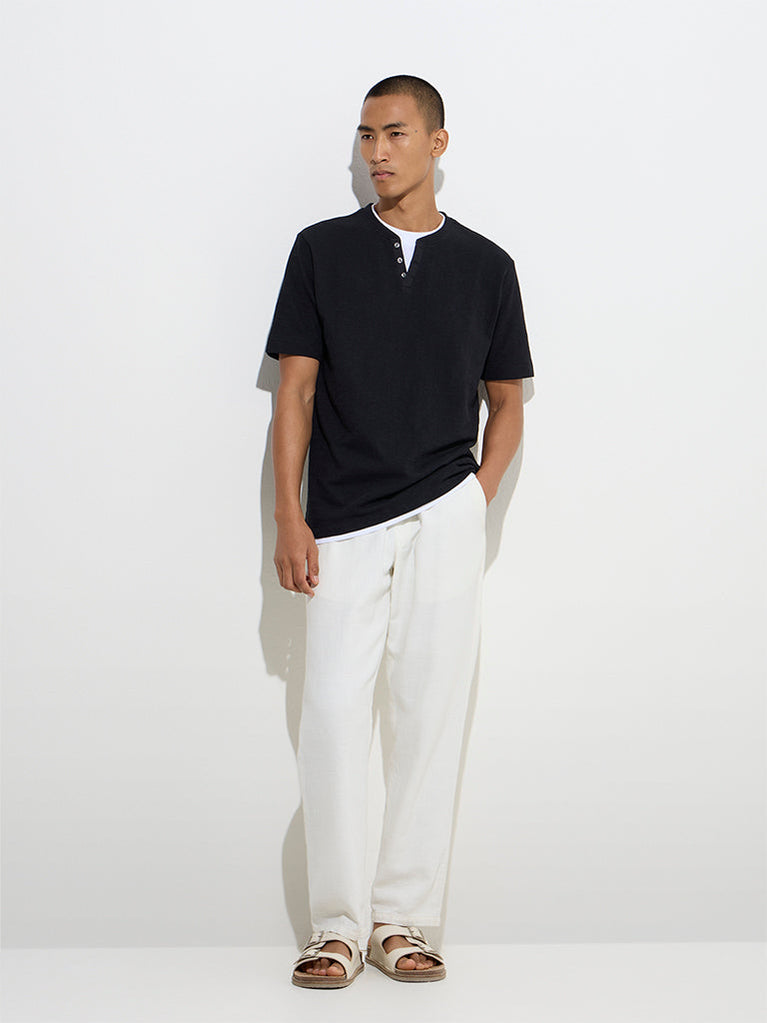 Ascot Black Self-Textured Relaxed-Fit Cotton-Blend T-Shirt