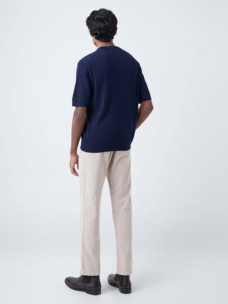 Ascot introduces these beige chinos that capture effortless sophistication. Rendered in a cotton-rich fabric with a fine corduroy texture, they are tailored in a relaxed fit for comfortable wear. Designed with a mid-rise waist, buttoned closure, belt loops and a zipper fly, this pair brings a polished edge to everyday styling.