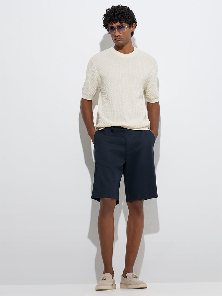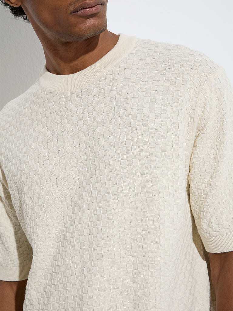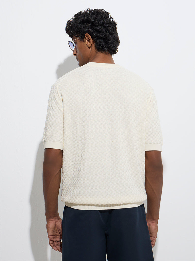 Simple yet elevated, this light yellow t-shirt from Ascot is woven from a knit-textured fabric that lends quiet sophistication. Cut in a relaxed fit from a soft cotton blend material, it features a classic crew neck and half sleeves.