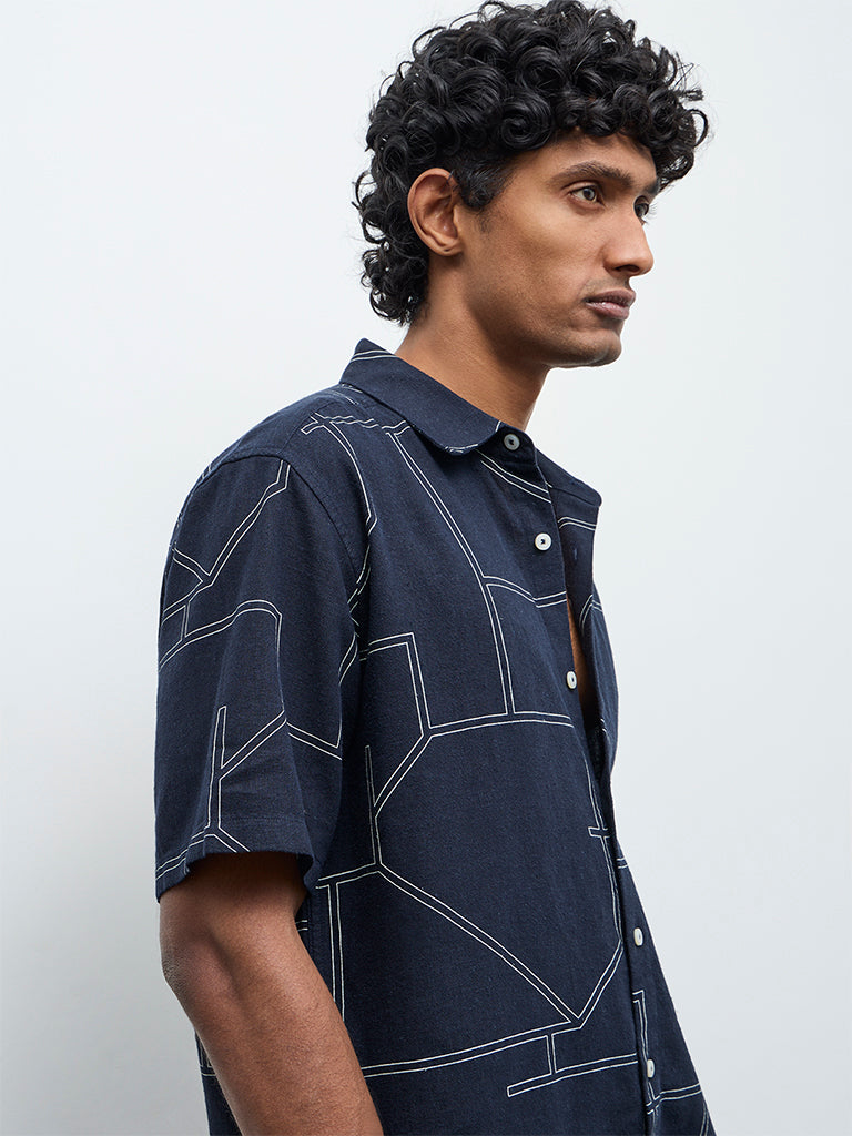 Ascot Navy Abstract Printed Relaxed-Fit Shirt