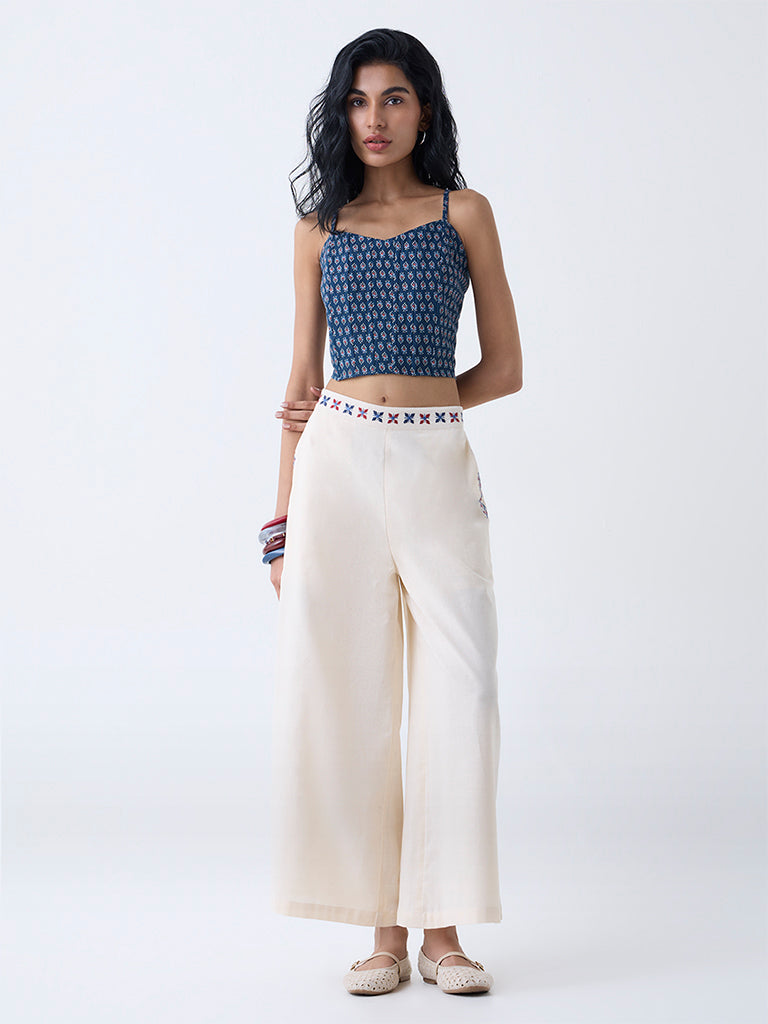 Bombay Paisley Blue Printed Cotton-Blend Top