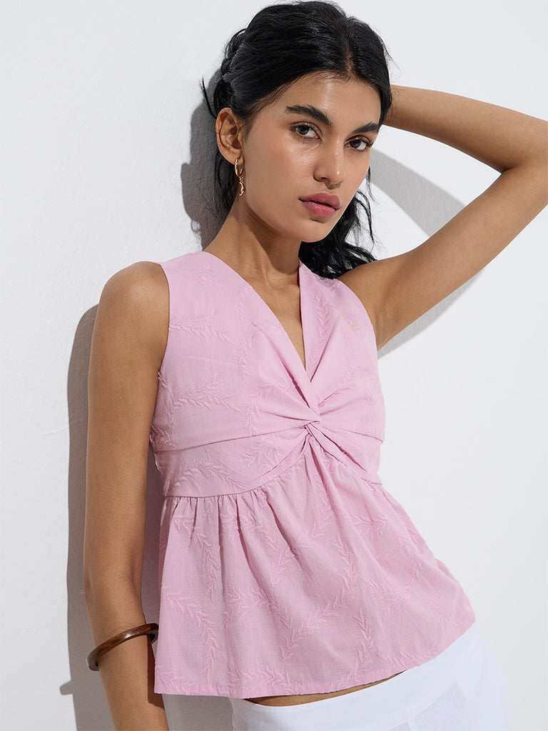 Bombay Paisley Pink Embroidered Ruched Cotton Top