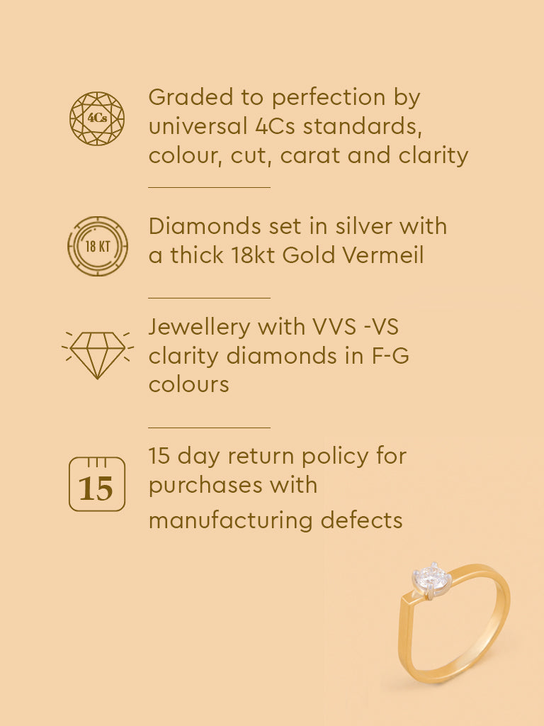 Shine bright with this brilliant solitaire lab diamond ring. Made in gold vermeil, it features a striking design that highlights the diamond’s sparkle.