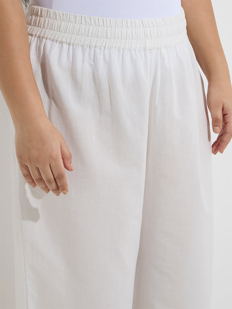 Diza White Schiffli Detailed Cotton Ethnic Pants