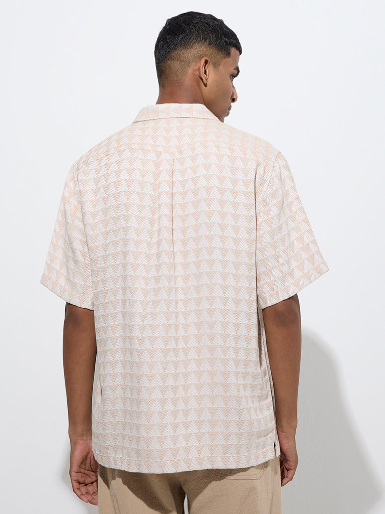 ETA Beige Geometric Pattern Relaxed-Fit Cotton Shirt