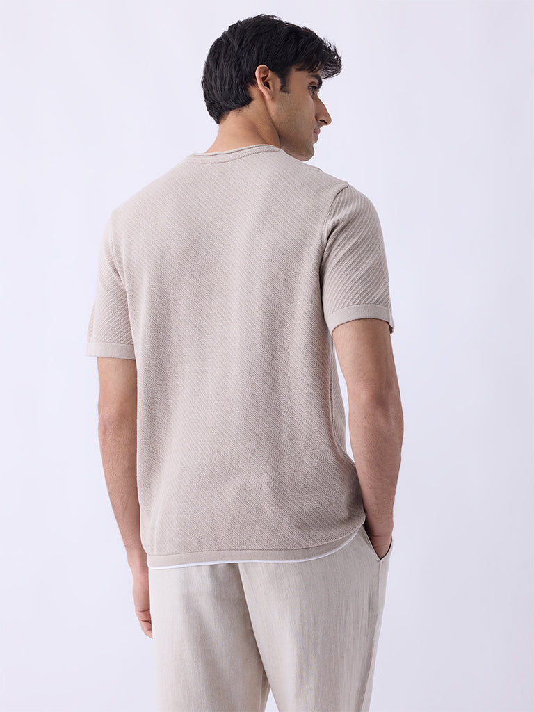 ETA Beige Woven-Textured Relaxed-Fit Cotton T-Shirt
