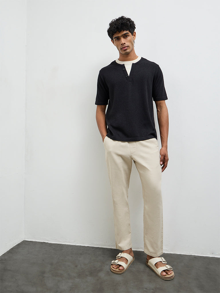 ETA Black Textured Relaxed-Fit T-Shirt