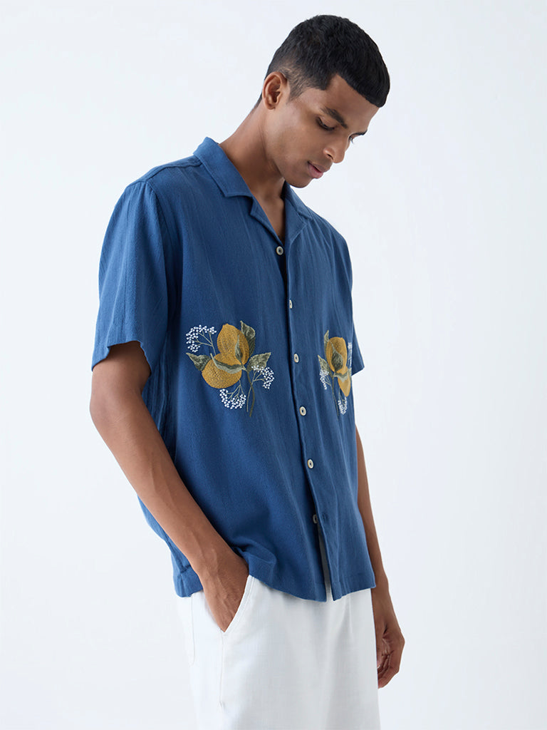 ETA Indigo Floral Embroidered Relaxed-Fit Shirt