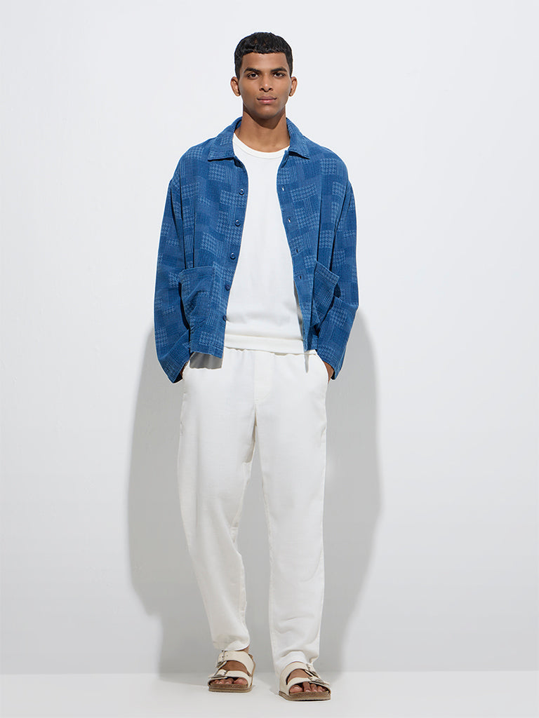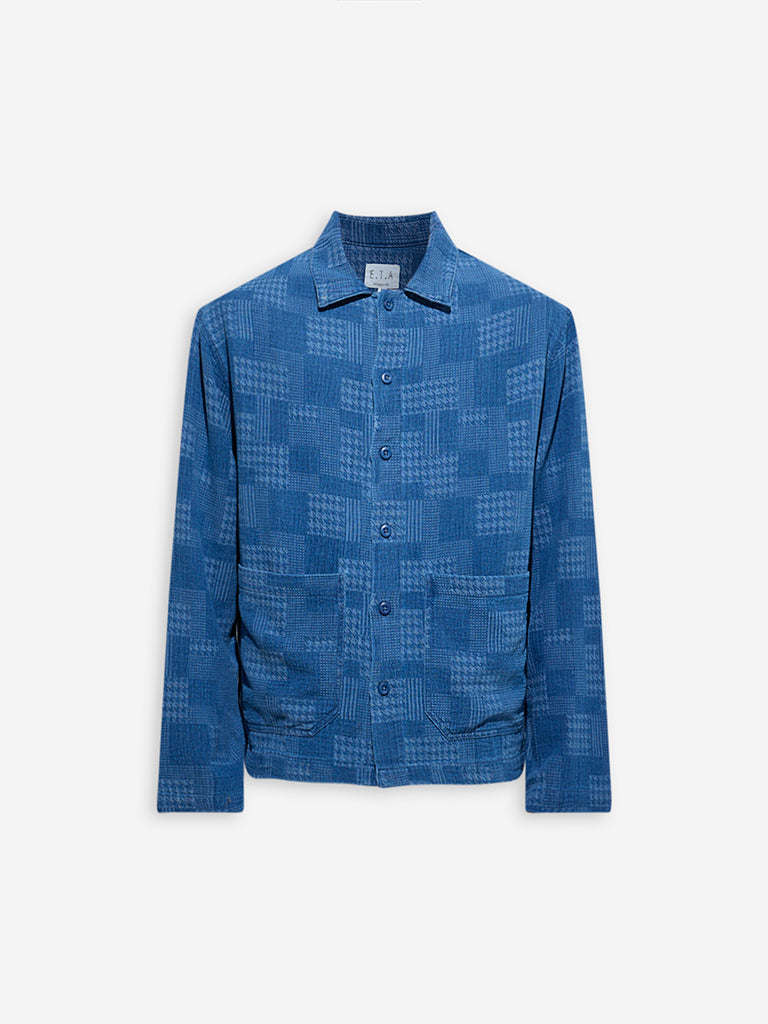 ETA Indigo Houndstooth Checkered Relaxed-Fit Cotton Shirt