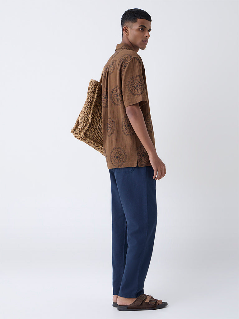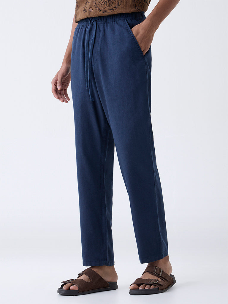 ETA Navy Relaxed-Fit Mid-Rise Cotton-Blend Pants