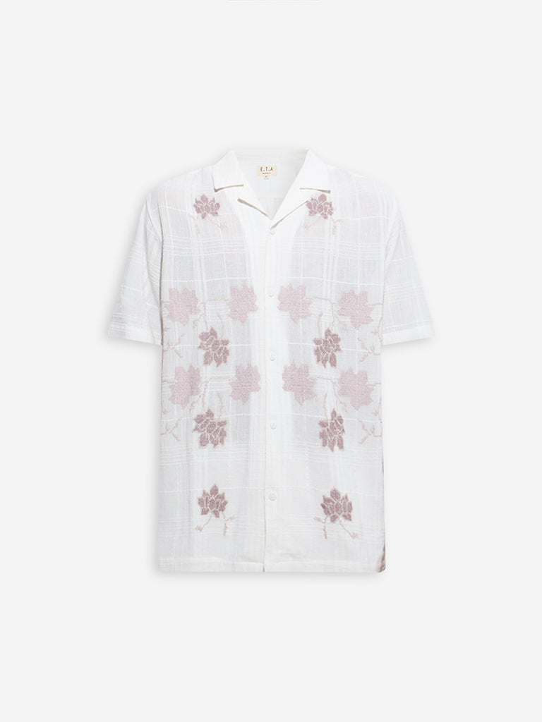 ETA White Floral Embroidered Relaxed-Fit Cotton Shirt