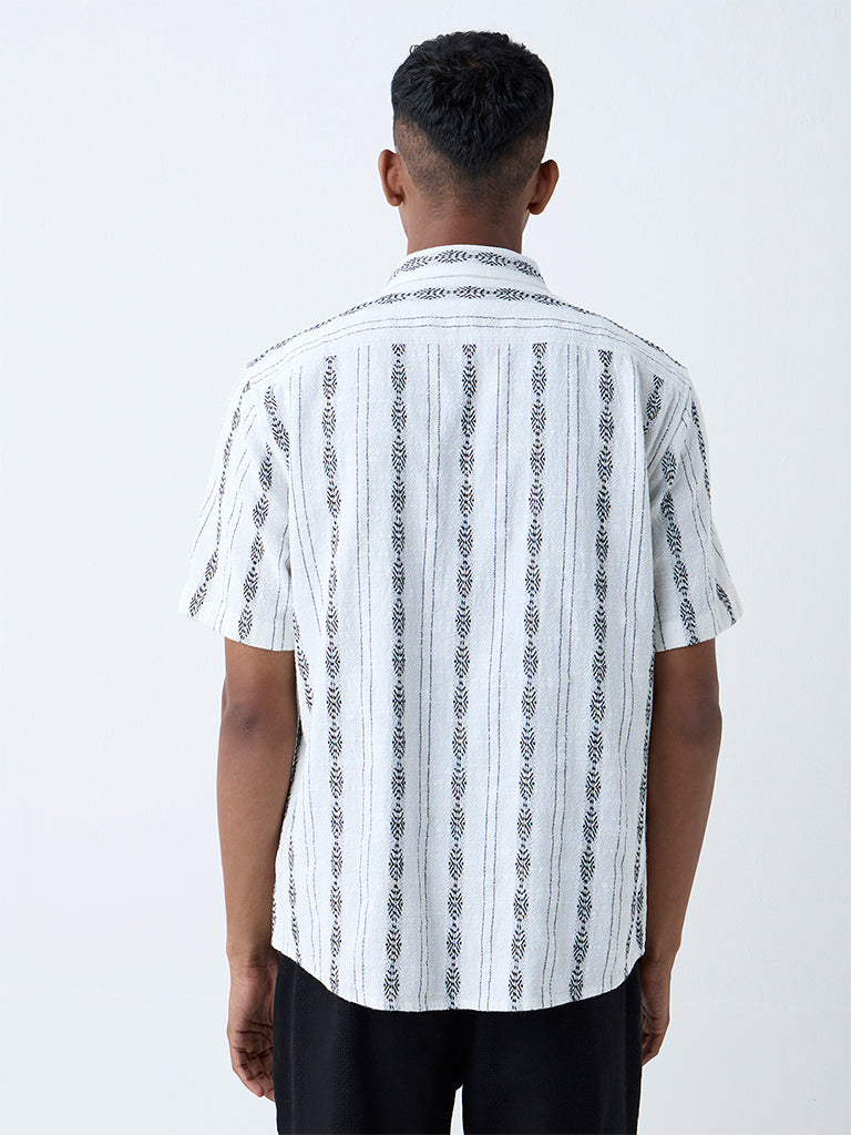 This white shirt from ETA blends understated detailing with relaxed tailoring. Fashioned with embroidered stripes, it brings just the right amount of texture to everyday ensembles. The lightweight fabric keeps things breezy, while the classic collar, short sleeves, and button-up front make it an easy choice for effortless styling.