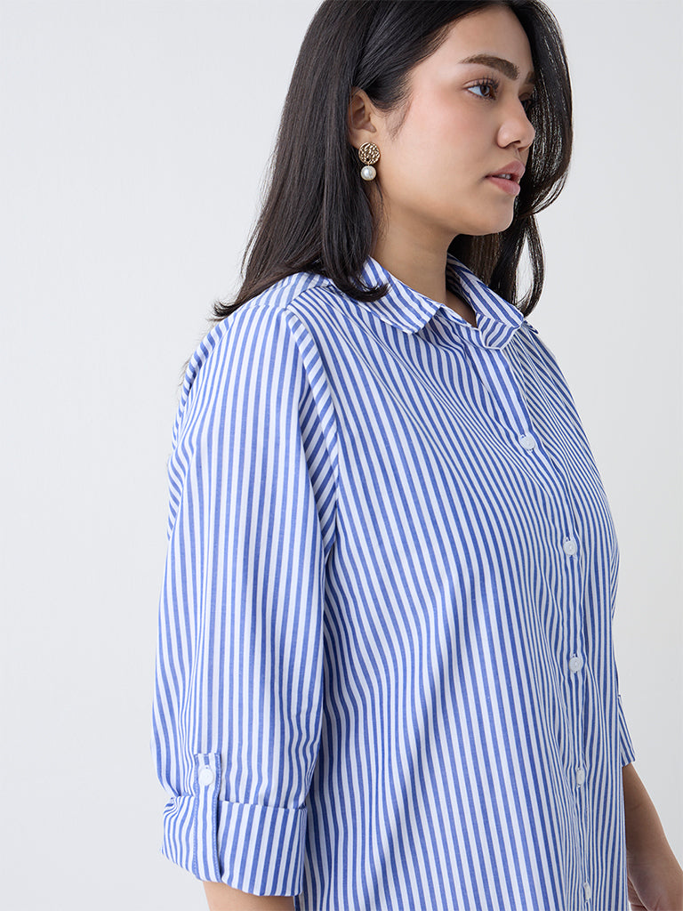 Gia Blue Striped Cotton Shirt Dress