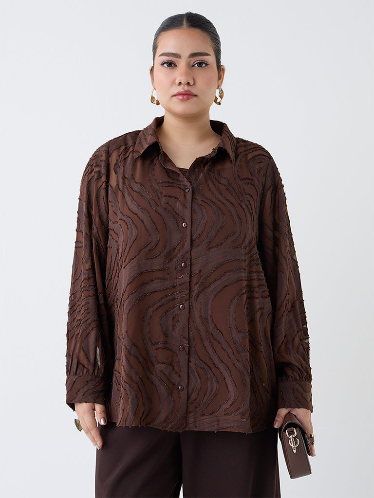 Gia Dark Brown Self-Patterned Shirt with Camisole