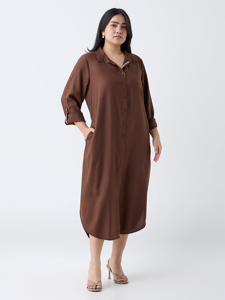 Gia Dark Brown Solid Shirt Dress