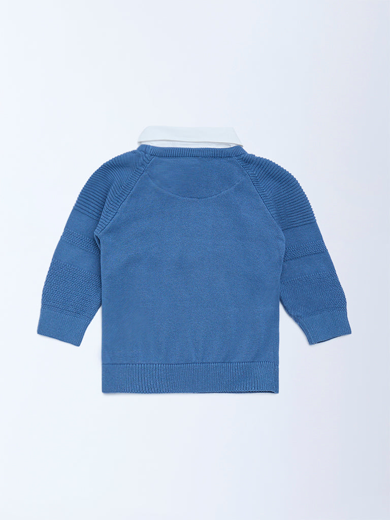 HOP Baby Blue Knit-Textured Cotton Sweater