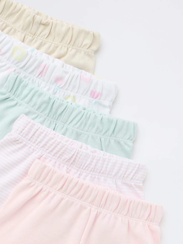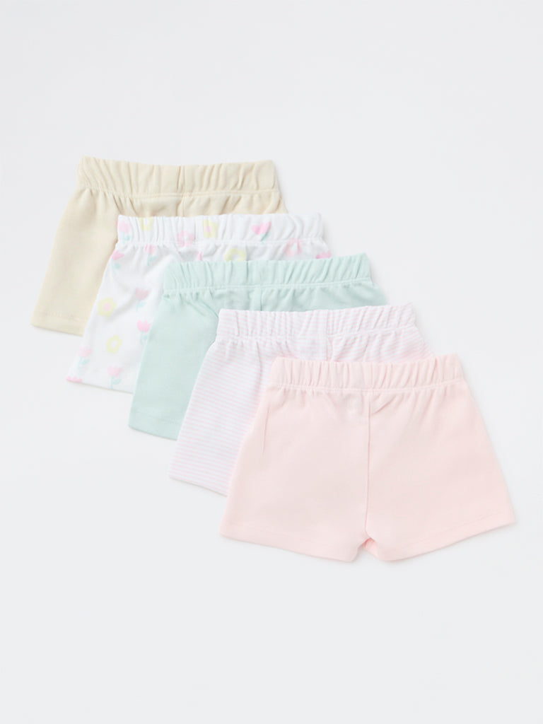 HOP Baby Girls Multicolour Cotton Shorts - Pack of 5