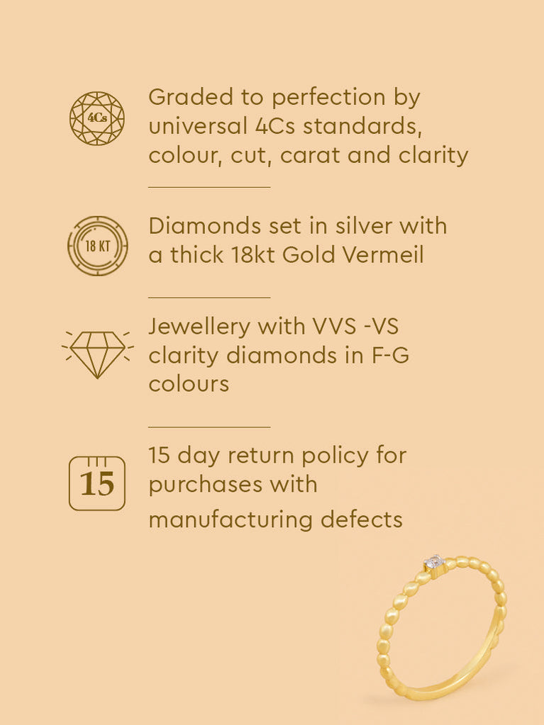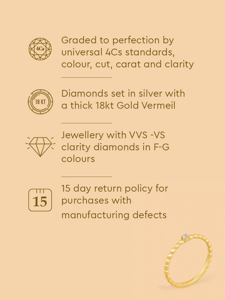 Enjoy the texture of this beaded ring featuring a lab diamond. Made in gold vermeil, it combines playful detailing with a touch of luxury.