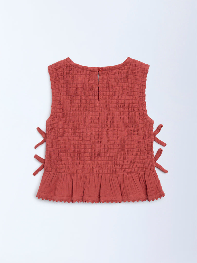 HOP Kids Girls Rust Smocked Cotton Top