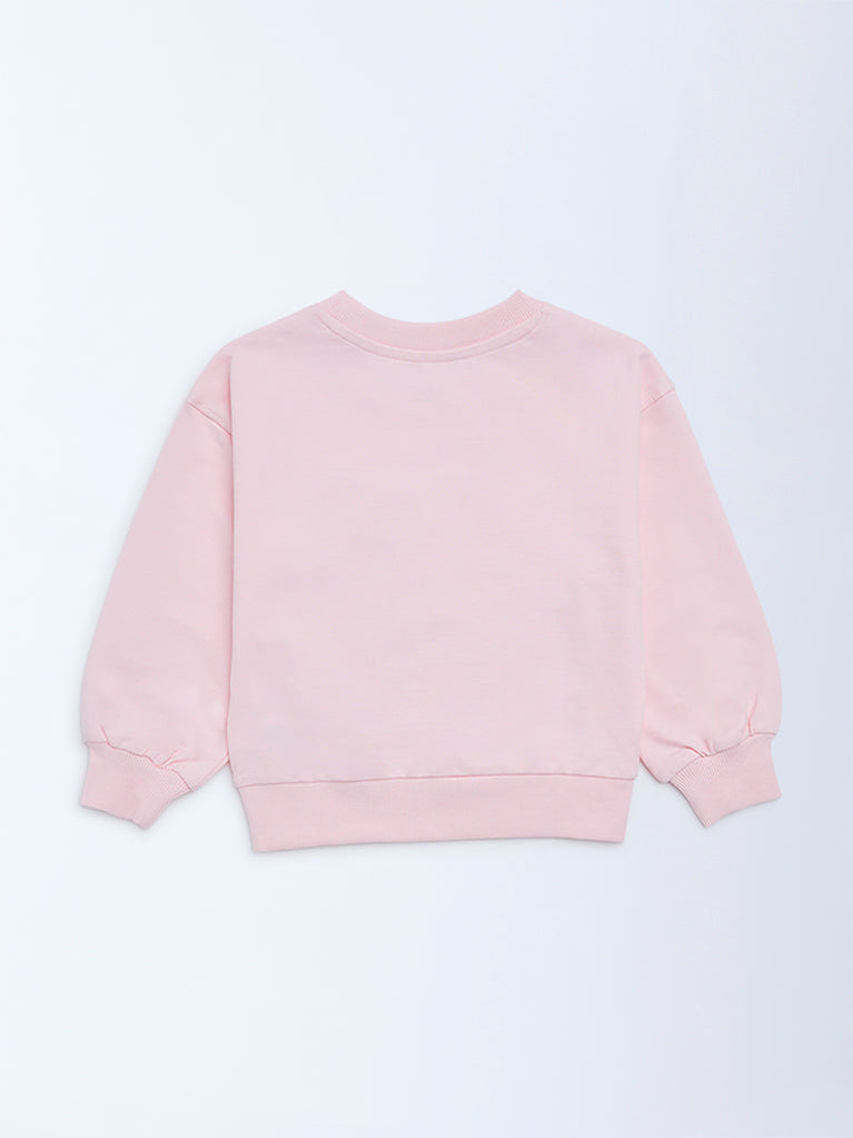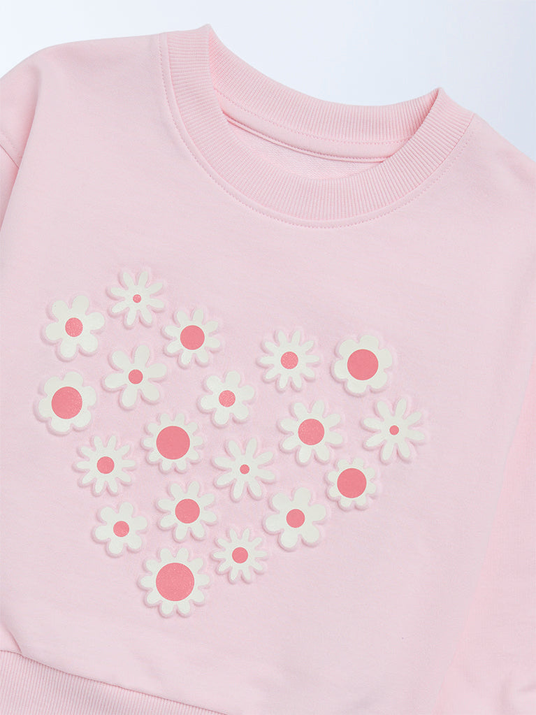 HOP Kids Girls Pink Floral Design Cotton-Blend Sweatshirt
