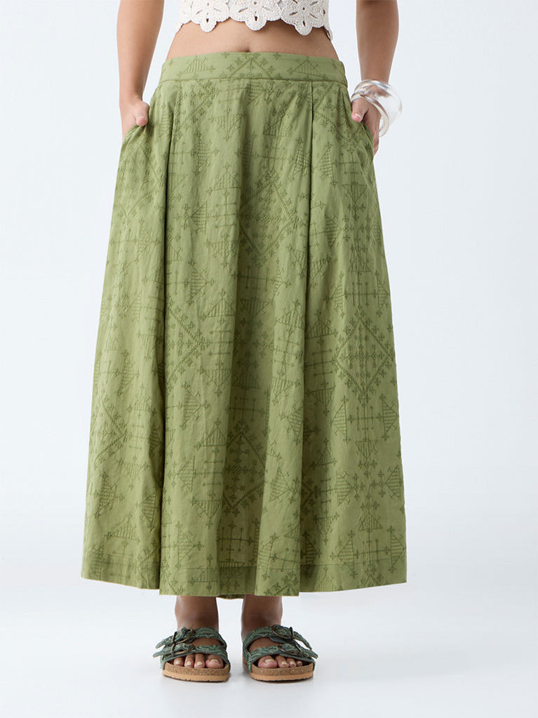 Bombay Paisley Sage Embroidered Cotton Skirt
