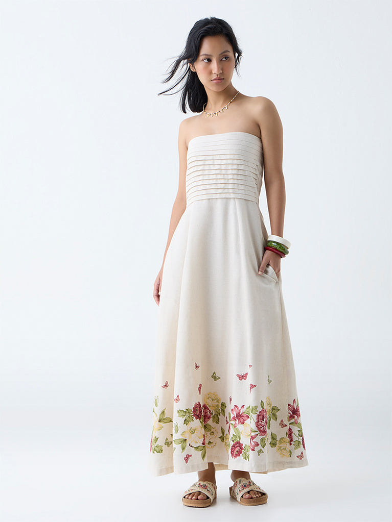 Bombay Paisley Off-White Floral Design Cotton Tube Dress