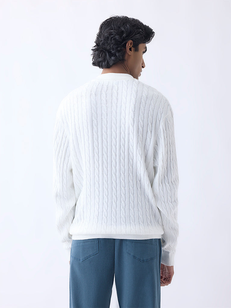 Ascot White Cable-Knit Relaxed-Fit Sweater
