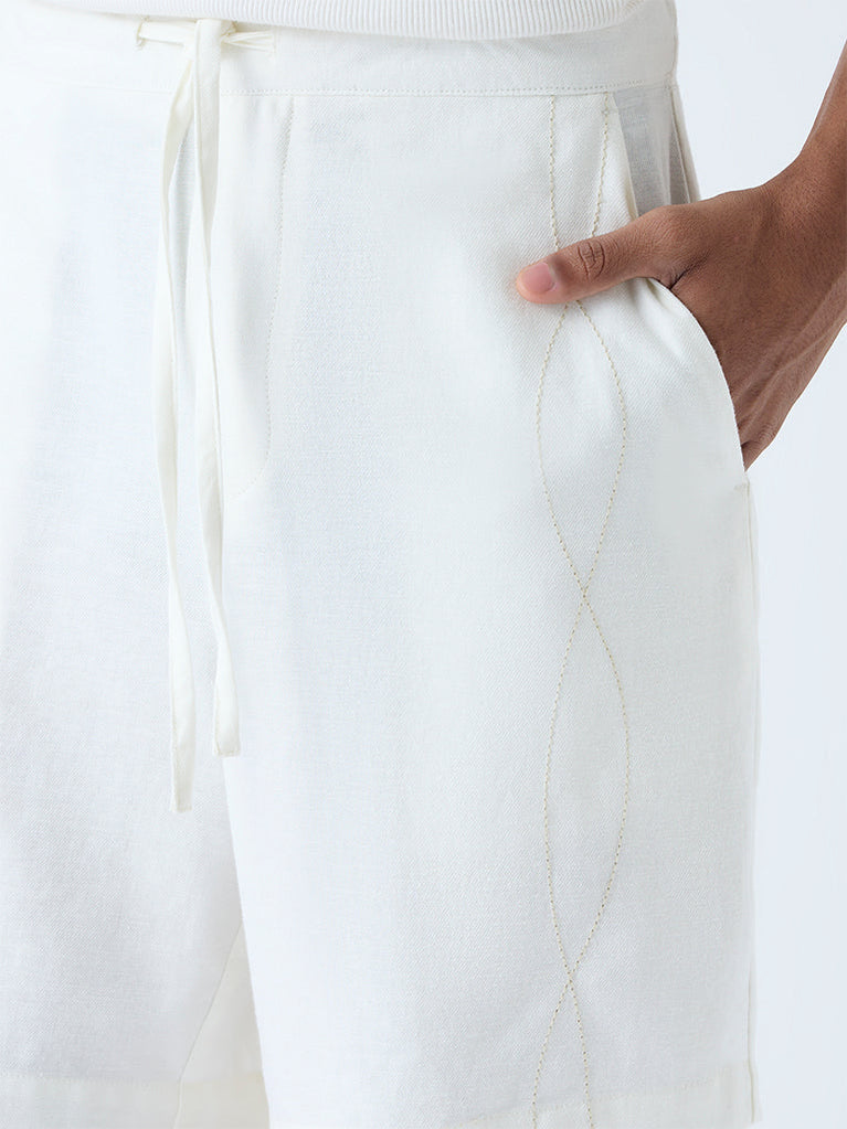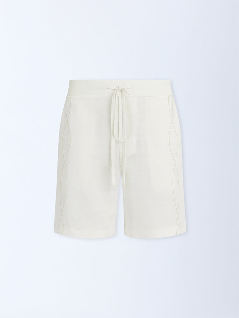 ETA White Embroidered Relaxed-Fit Mid-Rise Cotton-Blend Shorts