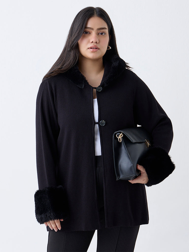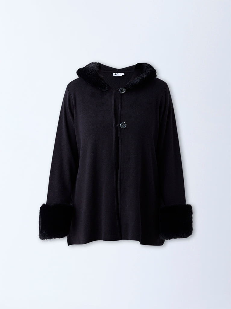 Bring a touch of elegance to your winter wear with this black cardigan from Gia. Featuring an attached hood with a faux fur trim, it leads to a two-button placket for a refined finish. The full sleeves are accentuated with faux fur cuffs, adding warmth and sophistication to your cold-weather look.