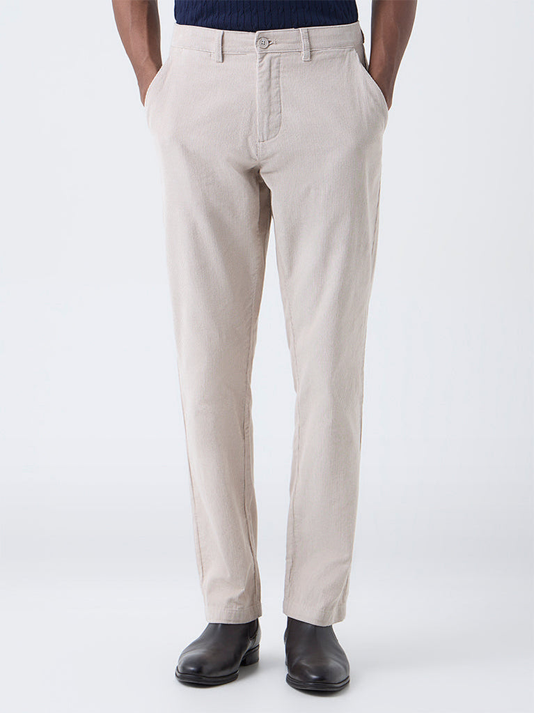Ascot Beige Mid-Rise Relaxed-Fit Corduroy Chinos