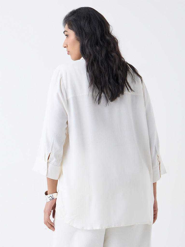 ETA White Floral Embroidered Relaxed-Fit Cotton Shirt