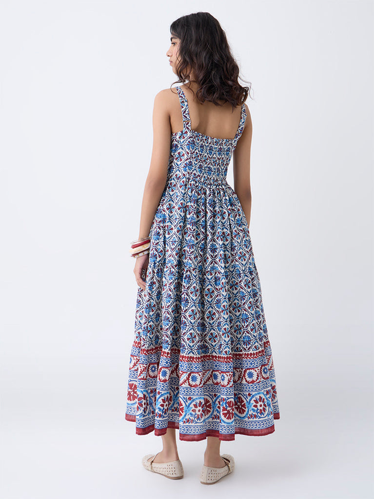 Bombay Paisley Blue Floral Cotton Tiered Dress
