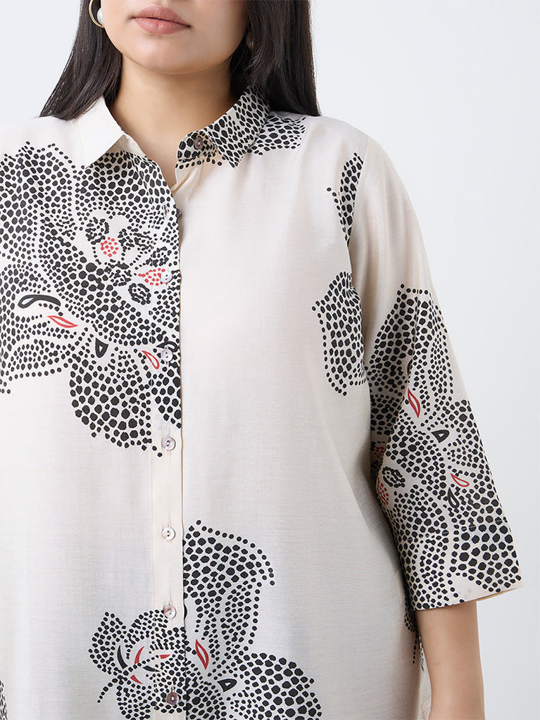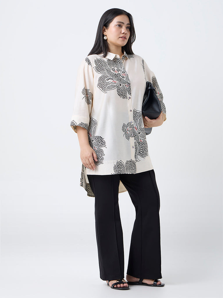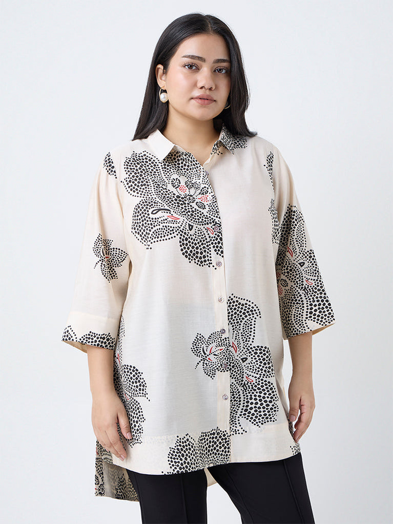 Diza Cream Floral Printed High-Low Tunic