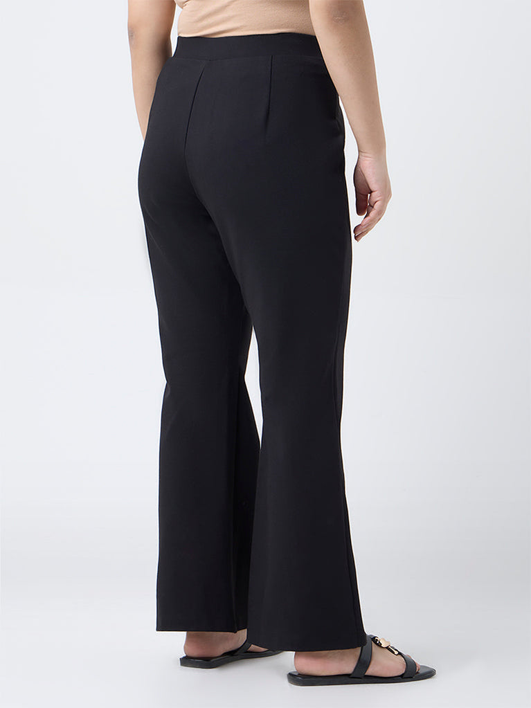 Diza Black Solid Flared Pants