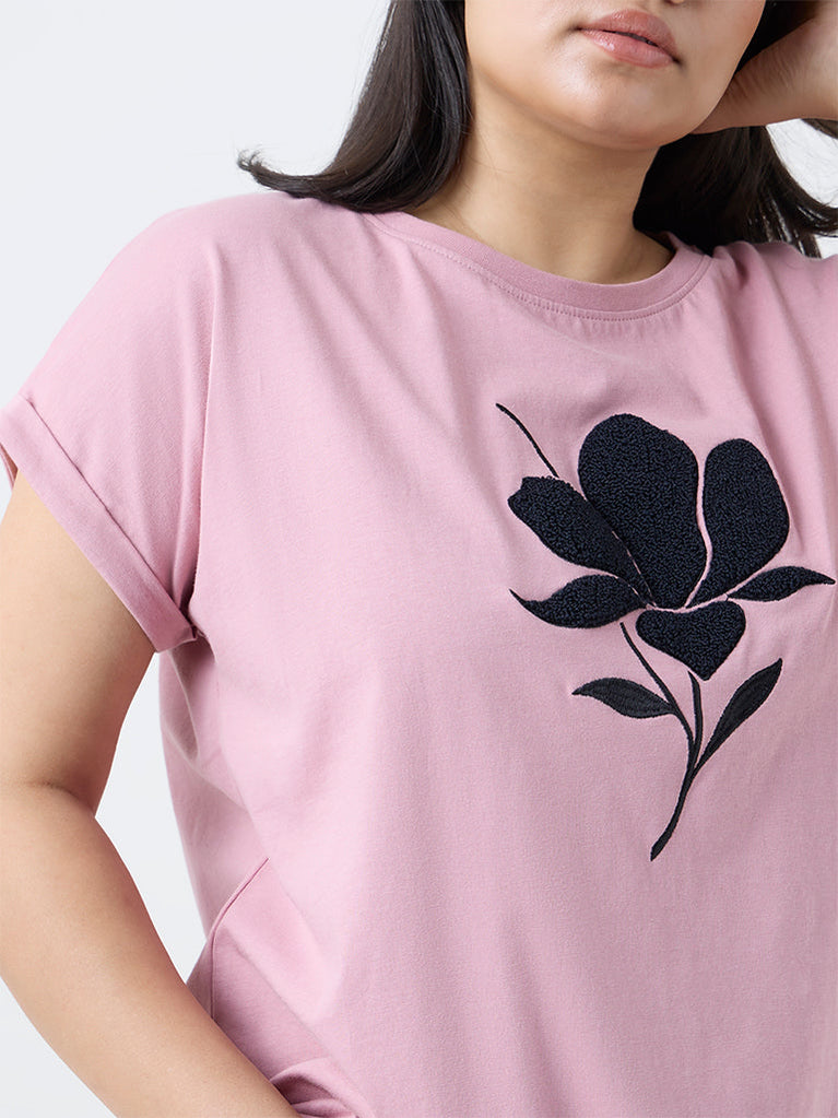 Gia Blush Pink Floral Embroidered Cotton T-Shirt