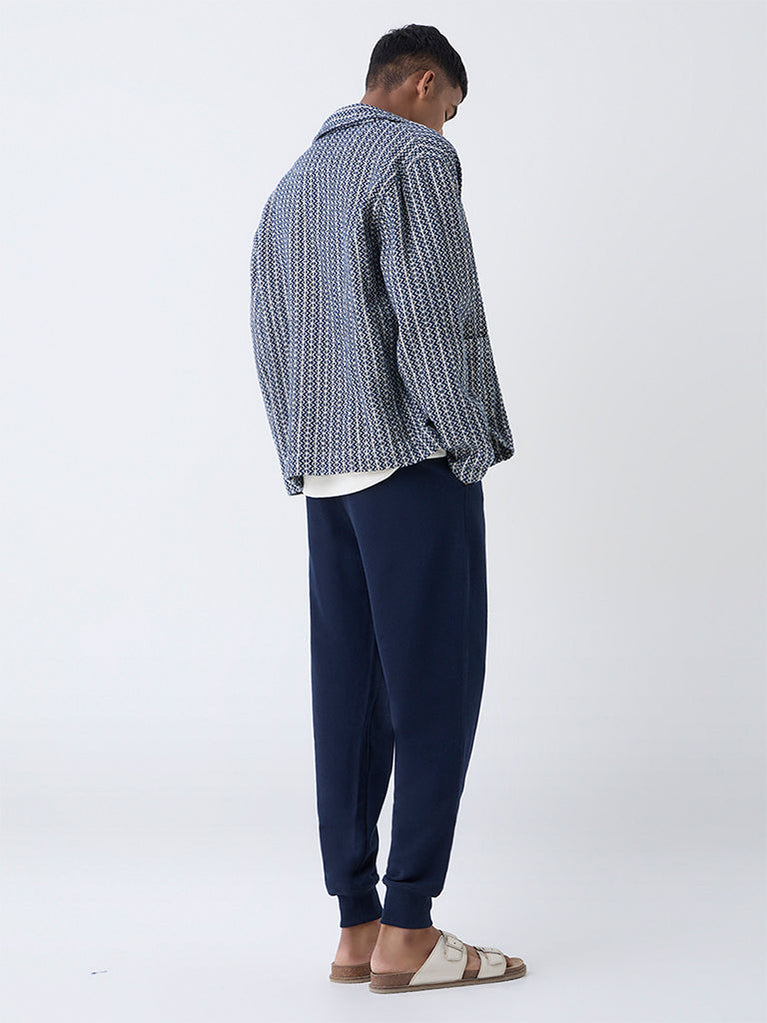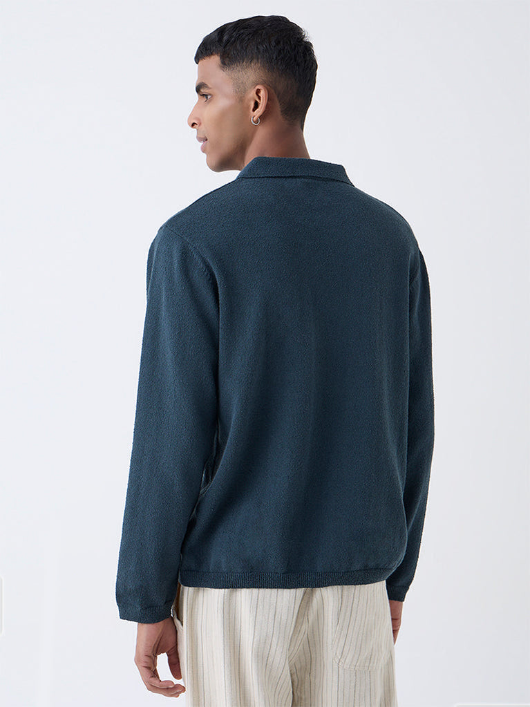 ETA Dark Blue Textured Relaxed-Fit Cotton-Blend Sweater