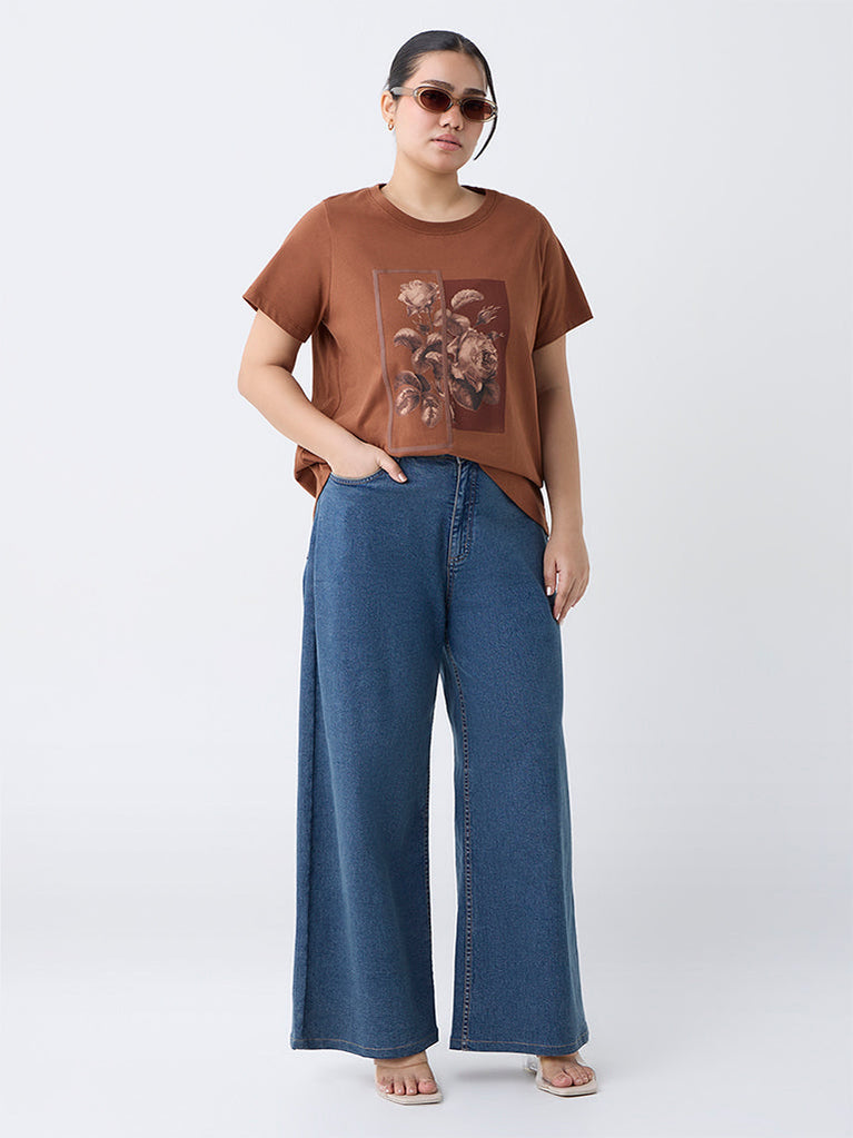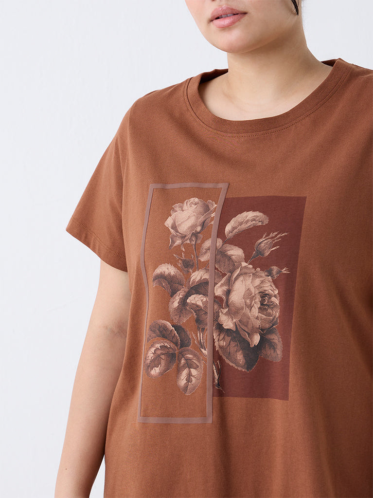 Gia Dark Brown Floral Pattern Cotton T-Shirt
