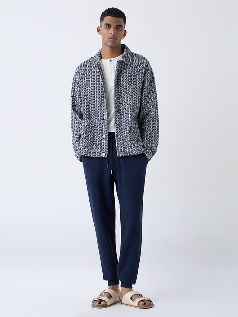 ETA Navy Striped Relaxed-Fit Cotton Shirt