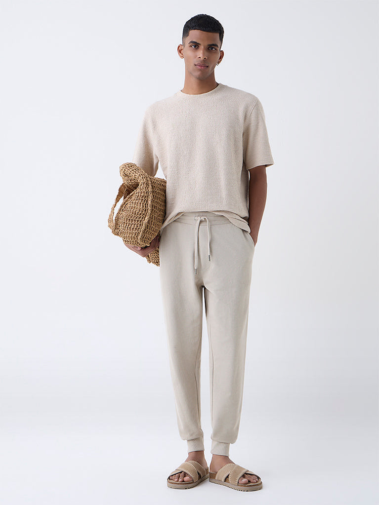 ETA Beige Relaxed-Fit Mid-Rise Cotton-Blend Joggers