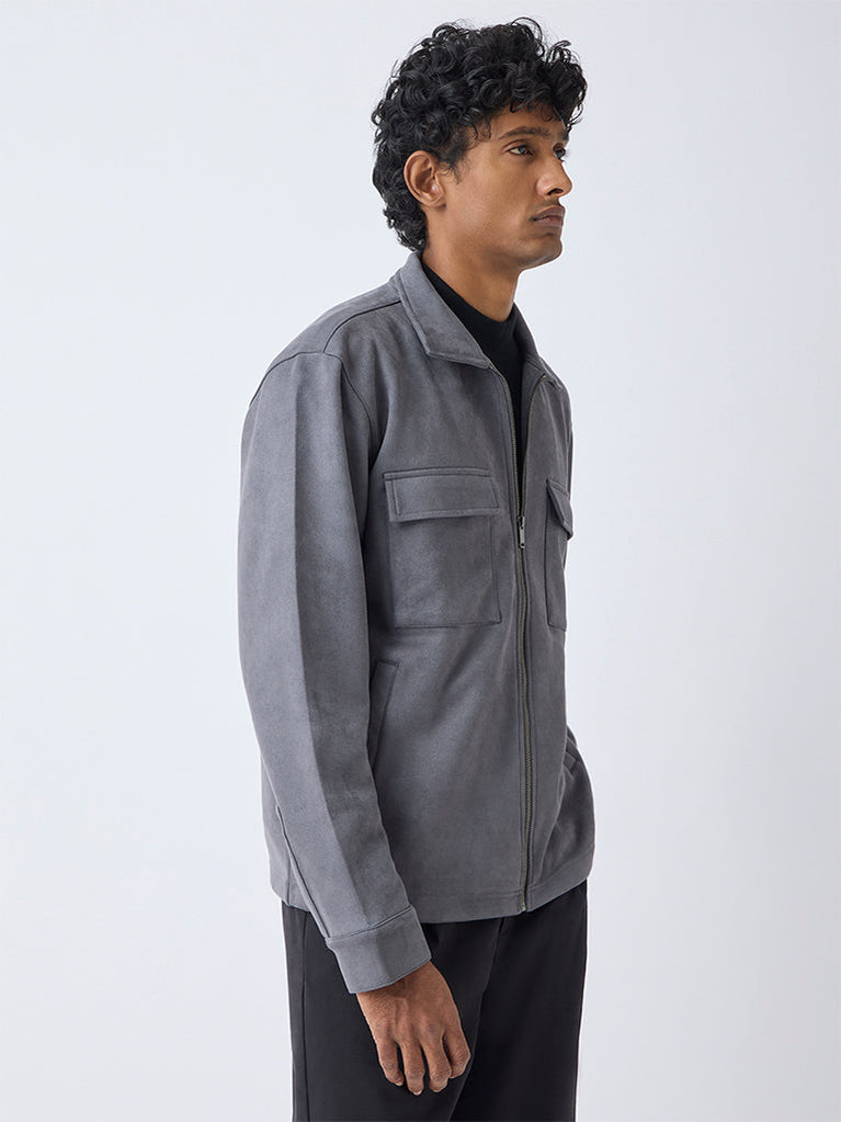 Ascot’s grey suede jacket brings together refined winter layering and off-duty ease. Designed in a relaxed handle, it features a structured collar, full zip front, flap pockets, and two kangaroo pockets—balancing function and style with a polished, cold-weather sensibility.